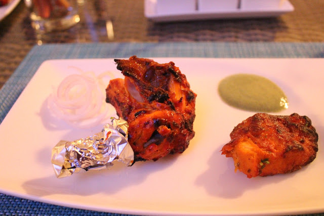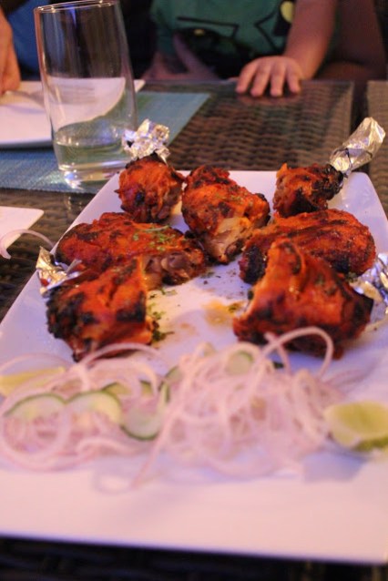 My plate with Tandoori Chicken and Tandoori Fish Tikka