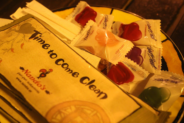 That was it, our tummies were full and we were satisfied. As we ordered for the check, we were served with some Heartbeat candy; this added smiles to our faces. We enjoyed the beautiful fountain view atleast twice during the course of our dinner. Do try Nandos once and then decide for yourself.