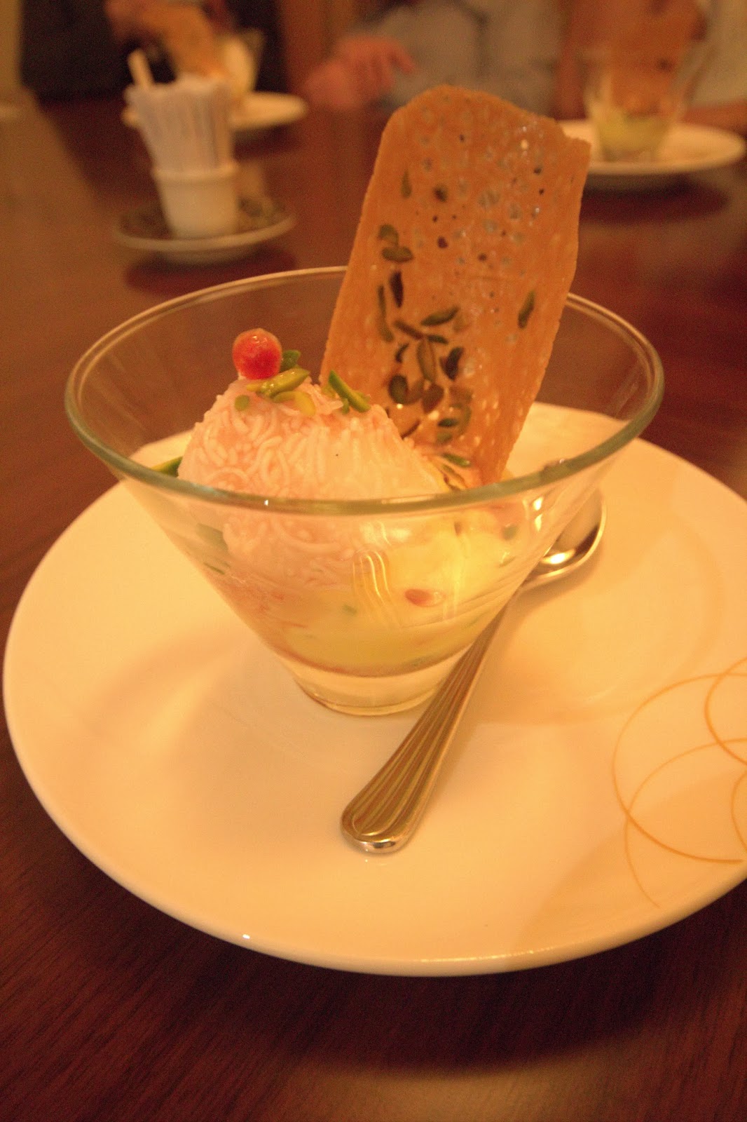 Finally dessert arrived at the table. Makhloot is similar to Faloudeh. The taste of Faloudeh is similar to Falooda. Makhloot (Persian iced noodles and Bastani Ice cream) is the perfect ending to any dinner. Due to the addition of Bastani Ice cream, the dessert is a delight for ones with a sweet tooth. However if you are not too fond of desserts that are a bit high on the sweetness scale, you can try something else.