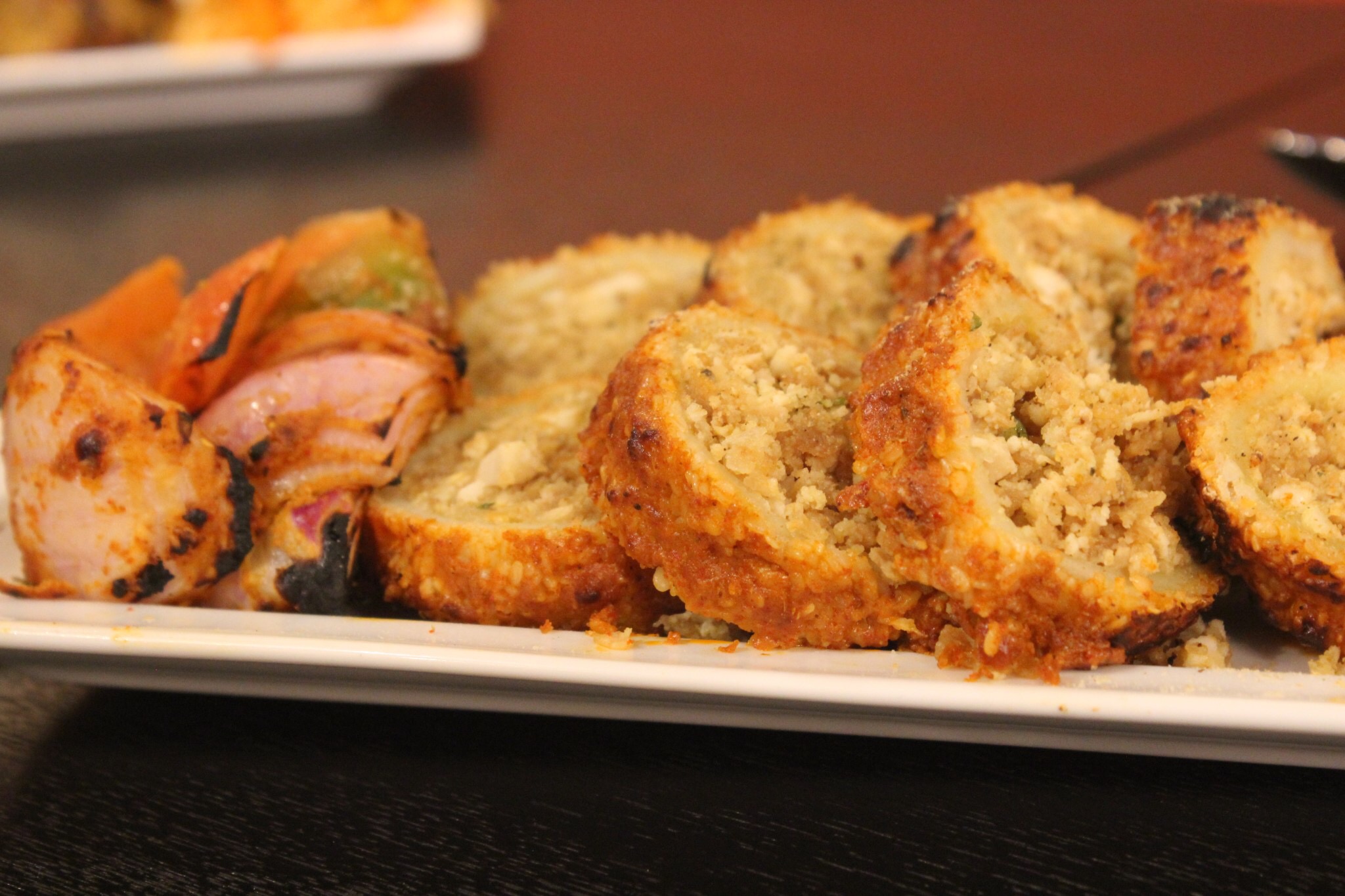 I am not a fan of Potato and hence found the stuffed tandoori aloo (aloo is potato) to be average. The dish consists of scooped potato stuffed with cottage cheese, poppadom, cashew nuts with aromatic herbs and spices coated with white sesame and cooked in a clay oven.