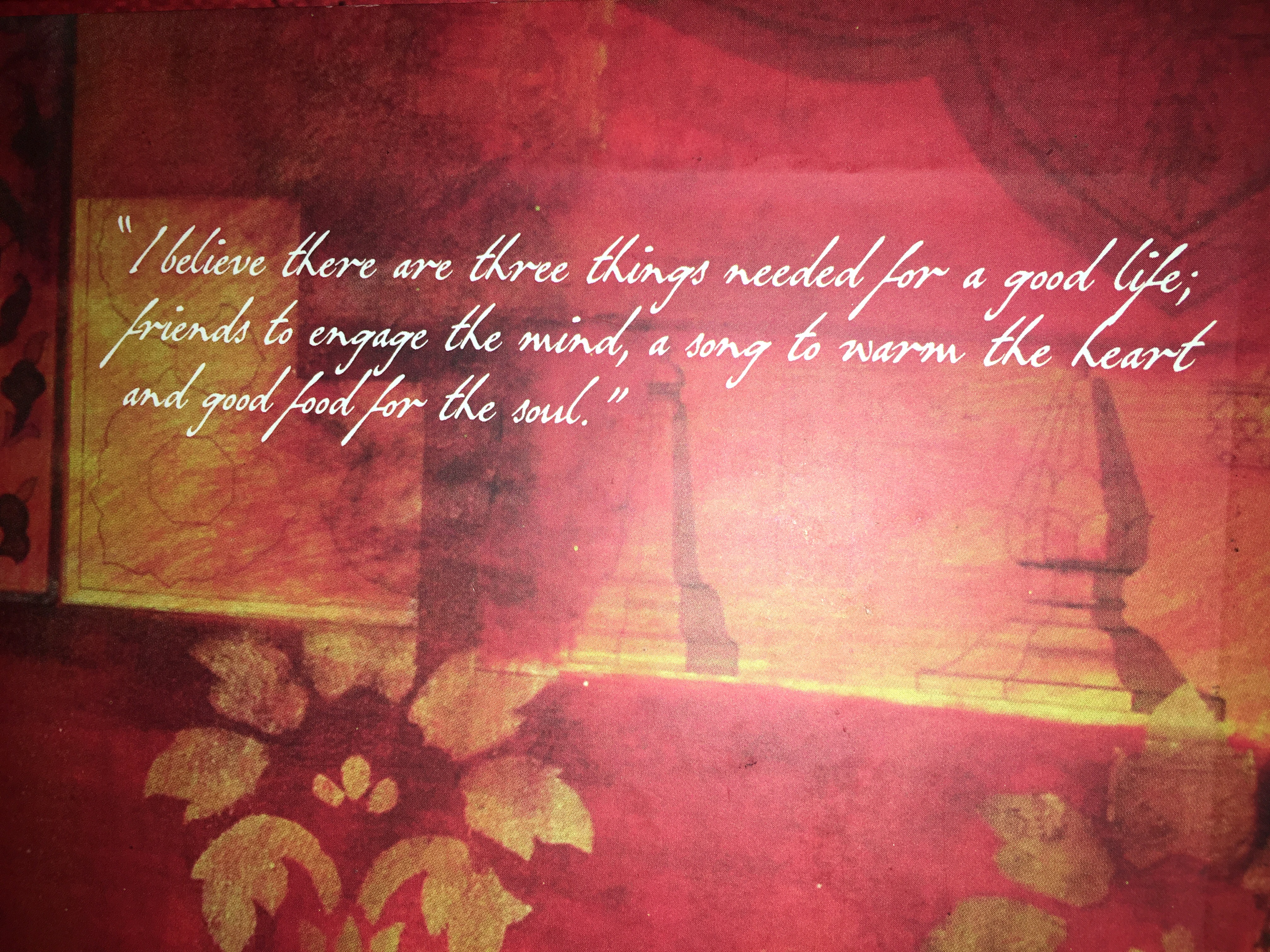 I don’t talk about menus at length but there were some really good quotes in this menu and I would like to share a photo of one of them below.