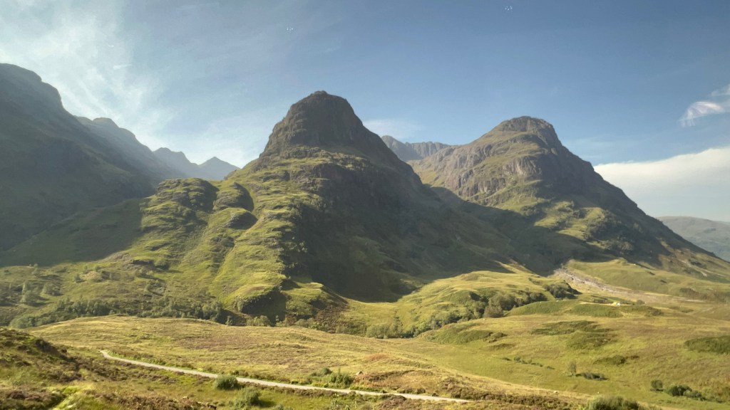 As we continued into the Highlands, the landscape started to change, and so did the mood. Glencoe, with its dramatic mountains and sweeping valleys, is one of those places that feels awe-inspiring. Our guide shared tales of this beautiful valley, and I was struck by the beauty of the Three Sisters of Glencoe – a trio of mountains that rise sharply, almost like guardians of the land.