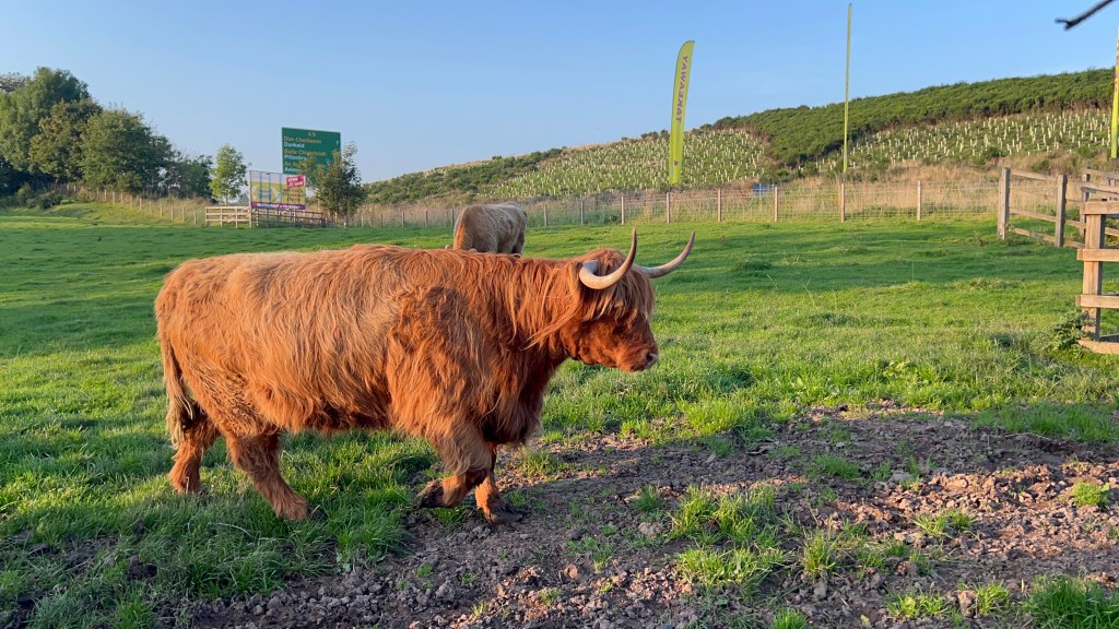 One of the highlights of the tour for me was the stop at the Taste of Perthshire farm, where we got up close and personal with the beloved Highland Cows (or “Heilan Coos” as they’re affectionately called in Scotland). These woolly giants are truly iconic, with their shaggy coats and long horns.