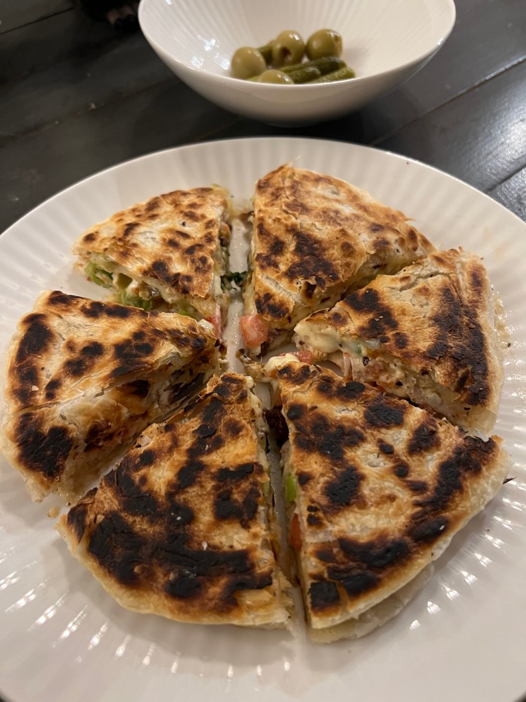 - Serve the quesadilla hot with pickles and whole olives on the side for a refreshing contrast.